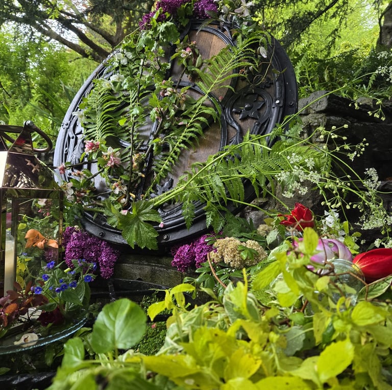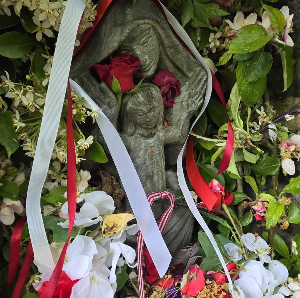 The day I entered the Chalice Well for the first time, the garden was decorated in full red and white having just closed the holiday Beltane, a pagan fertility holiday. The whole garden overflowed with fertile energy, and for me in particular, it spoke to me of the relationship between mother and child.