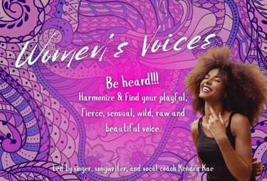 Kendra brings a musically guided experience to help women connect in a community of sisterhood, find creative and playful ways to use their voice, and build confidence to boldly express and communicate.